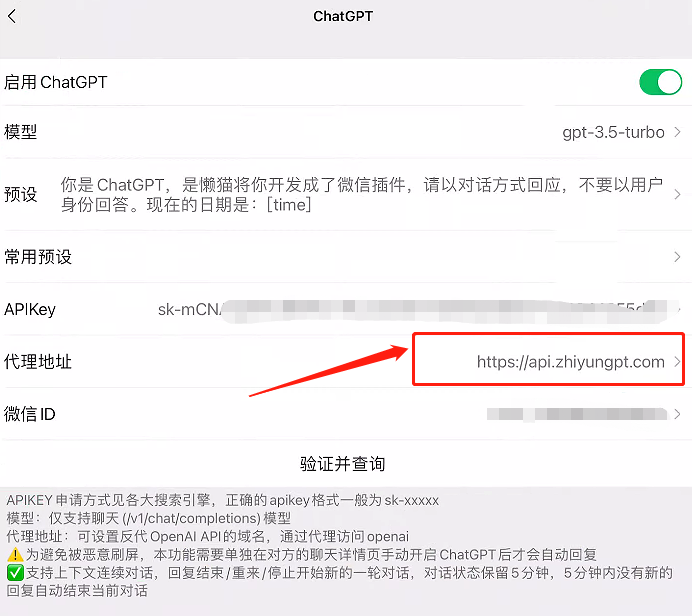## 高速key每日是==没有请求次数限制的==,==RPM==(每分钟请求数)跟==TPM==(每分钟tokens数),是有要求的,还不懂速率的,认真往下看!帮你避坑! ### 因为==普通官方原生key有每分钟3次请求的限制==,有时间限制,还有被官方封的风险,为了更好的用户体验,默认发我们的企业高速key给大家,没有时间限制,用完为止。 ## ==注意:==官方原生key有时间限制,如果过期或者由于你的使用导致被封的,我们无法提供售后,我们只是官方的搬运工,无法保证官方封不封你。官方原生key,只管首次测试能通! ## (PS:如果是工作室长期跑3.5模型,需要超高速转发的,可以联系微信:chuyun8859开通,也可以配合调试程序代码,4.0默认最高速),速率见最底下图;  ### ==注意:==官方原生key过期,或者由于你的使用导致被封的,我们无法提供售后,我们只是官方的搬运工,无法保证官方封不封你。官方原生key,只管首次测试能通!选择原生接口的,需要自行承担被封风险。 ## 详细API接口在线调试文档案例:https://apifox.com/apidoc/shared-03e25a6e-55fc-40dd-90b1-e86abb32ddb9 ## Python开发调用案例一: 使用 OpenAI 的模型进行聊天。以下是一个使用 Python 的 `openai` 库与 OpenAI API 进行聊天的示例: 首先,确保你已经安装了官方最新的 `openai` 库,查看方式是在命令行输入openai -V 如果没有,请使用以下命令安装: ```shell pip install openai ``` 接下来,你可以按照以下示例编写代码: ```python from openai import OpenAI # 创建一个服务机实例,在这里可以进行base_url的设置,用下边的,同时key替换为购买智云的高速key client = OpenAI( base_url= "https://api.zhiyungpt.com/v1", api_key = "输入你购买到的智云高速key(sk-开头的)") # 创建一个聊天模型的消息 hat_completion = client.chat.completions.create( messages=[ { "role": "user", "content": "Say this is a test", } ], model="gpt-3.5-turbo", ) # 打印生成的文本 print(chat_completion.choices[0].message.content) ``` #### 在此代码中,你需要将 `api_key` 替换为你购买到智云的高速key。此外,你可以根据需要调整模型和消息。在这个例子中,我们使用了 `gpt-3.5-turbo` 模型,你可以在 [OpenAI 的模型列表](https://beta.openai.com/docs/engines)中查看可用的模型。购买智云高速key的,开通4.0权限的可以向下兼容3.5模型,扣费同步官方扣费,你调用3.5模型按3.5计费,调用4.0按4.0计费,下面有扣费说明!购买3.5的,没有调用4.0的权限,需要开通的,需要咨询跟智云客服沟通,帮你开通 ### 此外,我们创建了一个聊天模型的消息,包括一个系统角色的消息和一个用户角色的消息。系统角色的消息通常用来设置场景,用户角色的消息则是你想要模型回应的内容。你可以根据需要调整这些消息。 ## 案例二:zotero接口调试案例:点击编辑——首选项-高级-编辑器-搜索GPT-找到https://api.openai.com替换成https://api.zhiyungpt.com如下图  ## 案例三:桌面宠物设置如下图:在api url框里填入:https://api.zhiyungpt.com/v1/chat/completions key:填入我们发给你的key就可以;如下图  ## 案例是四:微信插件助手  ## 案例5:中科院学术优化配置:在config配置上配置这段代码如下图:API_URL_REDIRECT = {"https://api.openai.com/v1/chat/completions": "https://api.zhiyungpt.com/v1/chat/completions"} ==注意:文件夹只保留一个config配置即可==   ## 案例6:java sdk库开发参考: https://github.com/lzhpo/chatgpt-spring-boot-starter ## 我们的中转站,没有监控,源码本身加密。只做计费(跟官方一致),转发,登记使用消耗功能,方便每个用户可以自己去查询自己的消耗和自由充值进去! ### 关于速率的解释: ### 不同模型对应的速率!不同模型对应的速率! ### 我的高速key每日是没有请求次数限制的,但是RPM(每分钟请求数)跟TPM(每分钟tokens数)是受限于每个组织的速率(官方默认是三种速率,我们的组织均已经取得最高速率),每个模型的限制不同。所以你们自行测试。但是如果你们调用的模型不对,就会被模型速率限制。所以有些就会报错。你们的每一次请求都会分配到我不同组织空闲的key去请求,然后返回数据。openai是按照账户来限制请求次数跟速率,我这边是多账户多个API密钥轮流请求,来增加总请求次数, ## 扣费参考: ## 模型定价: 后台日志计费规则解析:假如提示是2000,补全是1000,使用的gpt-4,则您后台的扣费公式=(2000/1000)x0.03(提问价格)+(1000/1000)x0.06(回答价格)=$0.12 <table> <tr> <th>模型</th> <th>提问成本(每千token)</th> <th>回答成本(每千token)</th> <th>训练数据截止时间</th> </tr> <tr> <td>gpt-4</td> <td>$0.03</td> <td>$0.06</td> <td>2021年9月</td> </tr> <tr> <td>gpt-4-32k</td> <td>$0.06</td> <td>$0.12</td> <td>2021年9月</td> </tr> <tr> <td>gpt-4-1106-preview</td> <td>$0.01</td> <td>$0.03</td> <td>2023年4月</td> </tr> <tr> <td>gpt-4-vision-preview</td> <td>$0.01</td> <td>$0.03</td> <td>2023年4月</td> </tr> <tr> <td>gpt-3.5-turbo</td> <td>$0.00075</td> <td>$0.001</td> <td>2021年9月</td> </tr> <tr> <td>gpt-3.5-turbo-0301</td> <td>$0.00075</td> <td>$0.001</td> <td>2021年9月</td> </tr> <tr> <td>gpt-3.5-turbo-0613</td> <td>$0.00075</td> <td>$0.001</td> <td>2021年9月</td> </tr> <tr> <td>gpt-3.5-turbo-1106</td> <td>$0.0005</td> <td>$0.001</td> <td>2021年9月</td> </tr> <tr> <td>gpt-3.5-turbo-16k</td> <td>$0.0015</td> <td>$0.002</td> <td>2021年9月</td> </tr> <tr> <td>gpt-3.5-turbo-16k-0613</td> <td>$0.0015</td> <td>$0.002</td> <td>2021年9月</td> </tr> <tr> <td>claude-2</td> <td>$0.01102</td> <td>$0.03268</td> <td>不详</td> </tr> </table> ## GPT-4 检验方法: 新手用户请不要询问他是什么模型,API均回复为GPT-3,请使用以下逻辑性问题进行测试,具