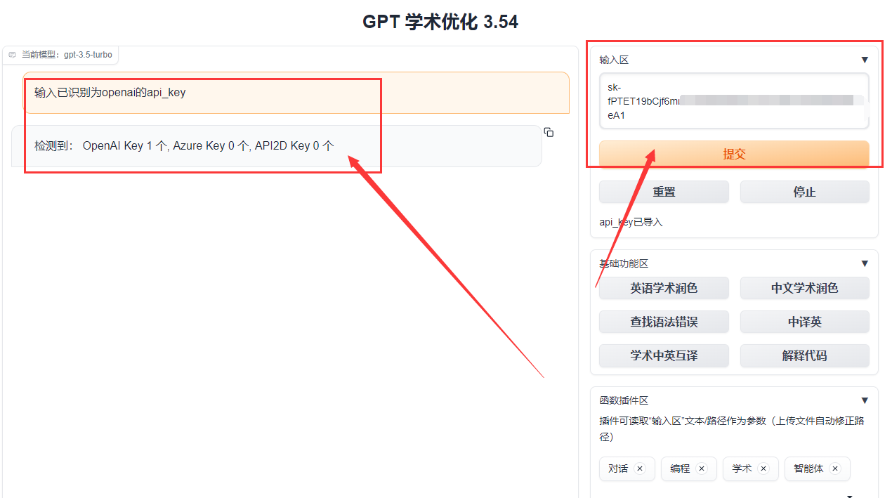 ## 进入网页,https://xs.zhiyunai168.com/ ## 首次输入我们发给你的key,点提交,sk-开头的就是key,或者你自己创建一个令牌  ## 4.特别提醒:必须要系统检测到你输入的key才有有效。如下图:  ## 5.可以开始使用啦!随机提问一个问题:能回答问题,就代表配置正确啦!