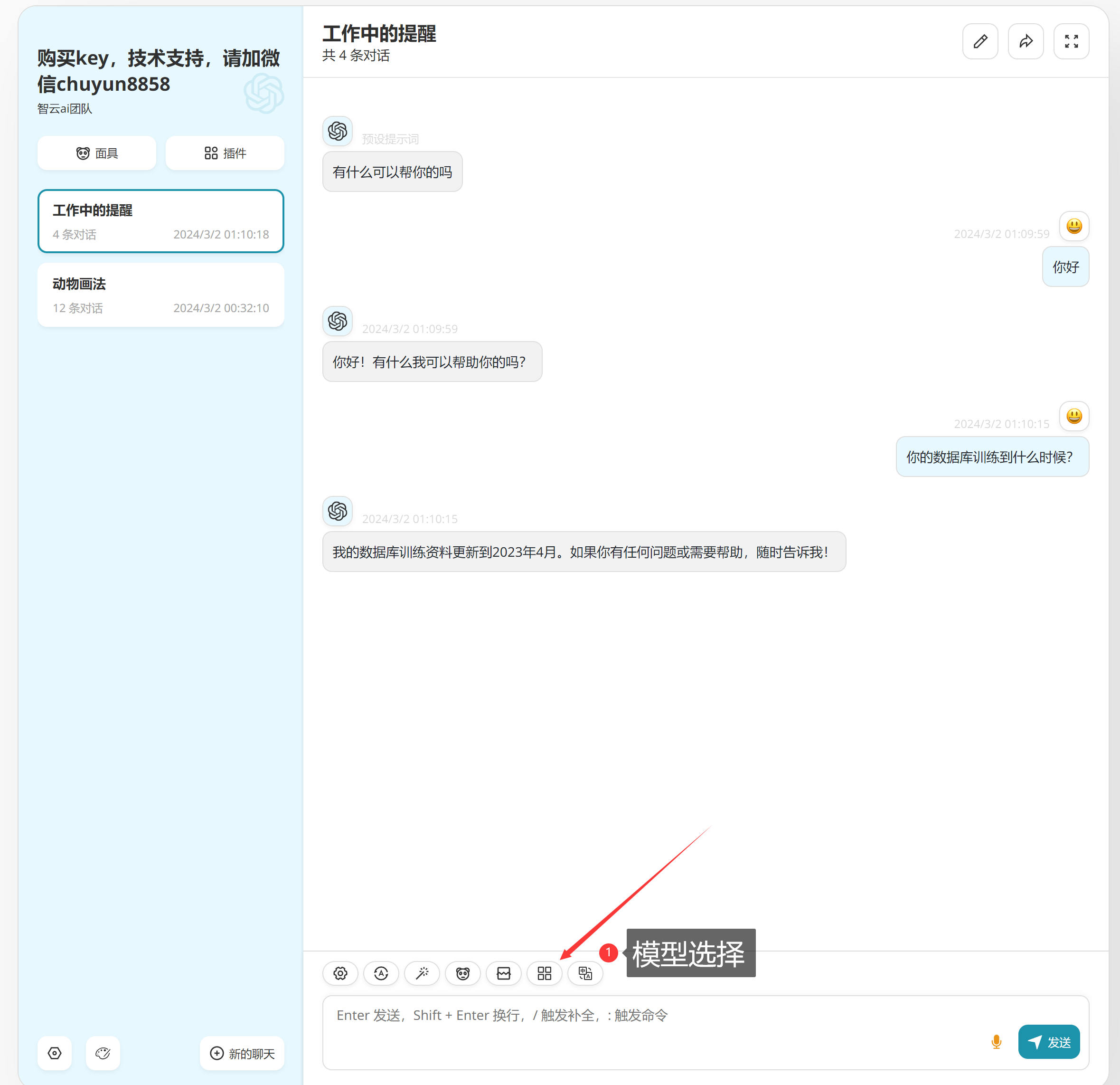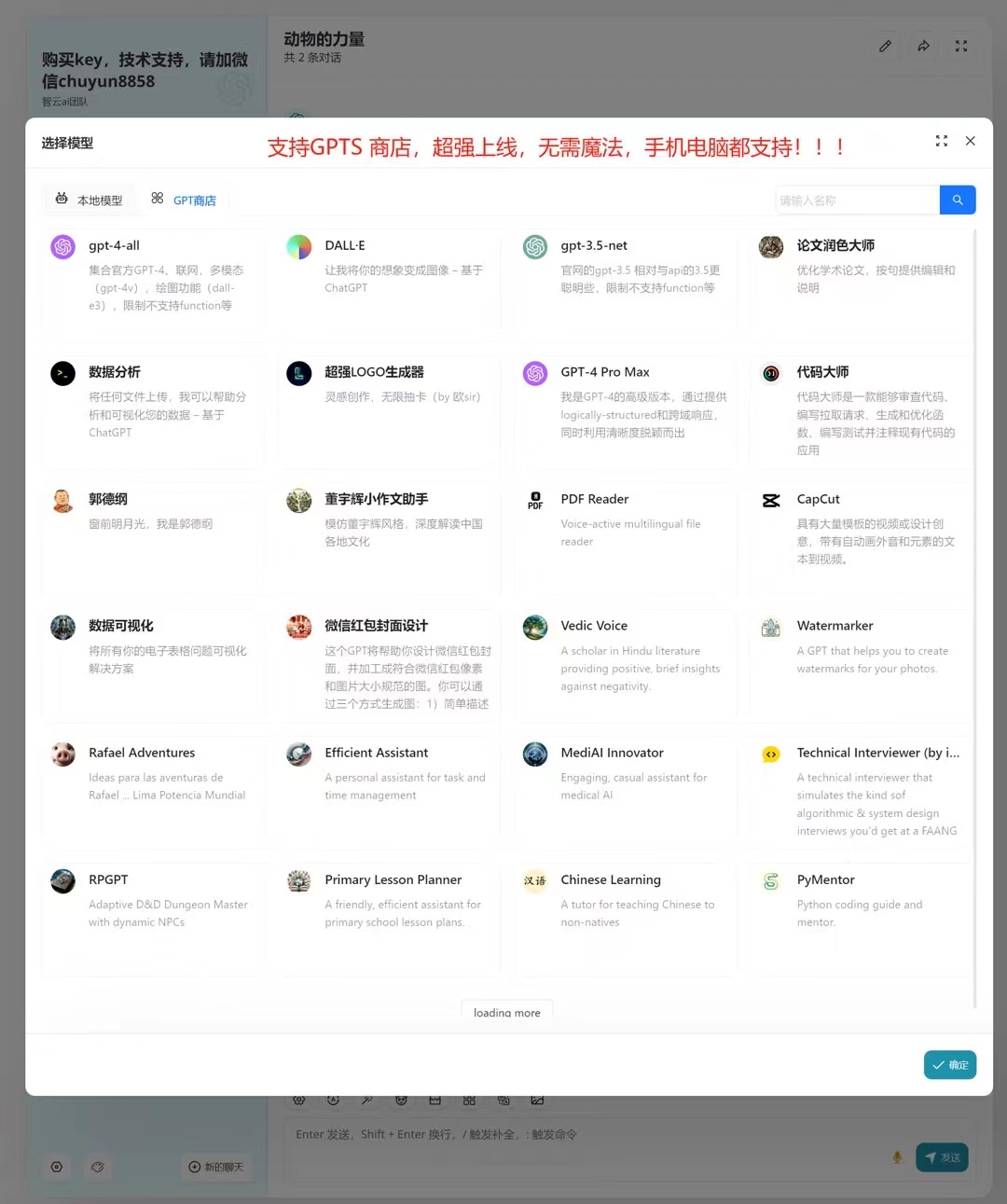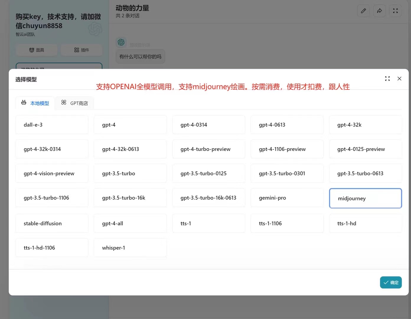 ## ps:跟客服获取令牌后,也可以通过: https://chat.zhiyunai168.com/ ### 直接访问使用:配置教程如下:  ## 模型选择:  ## 功能介绍: ### 支持全模型调用:   ## 绘画模型调用: