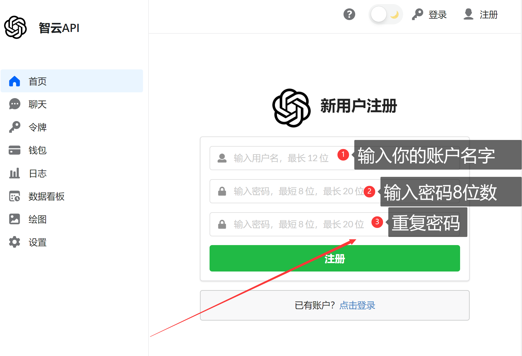 智云ai聊天系统,注册使用教程